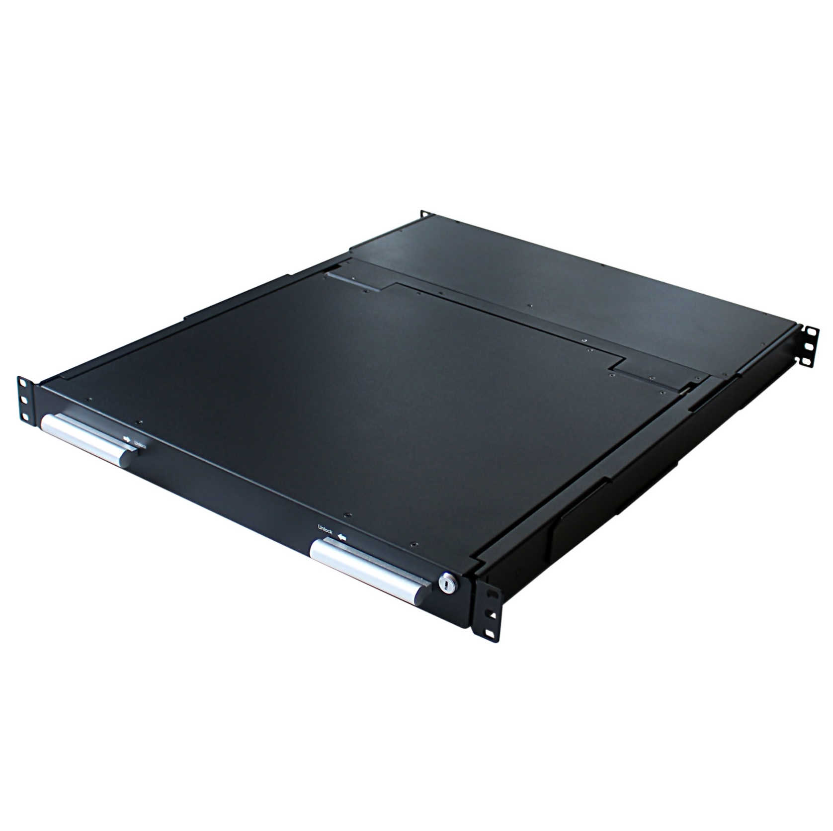 The self-locking rails when in the fully extended open position and the ultra convenient auto lock release when the LCD panel is closed, make for simple and hassle free operation.