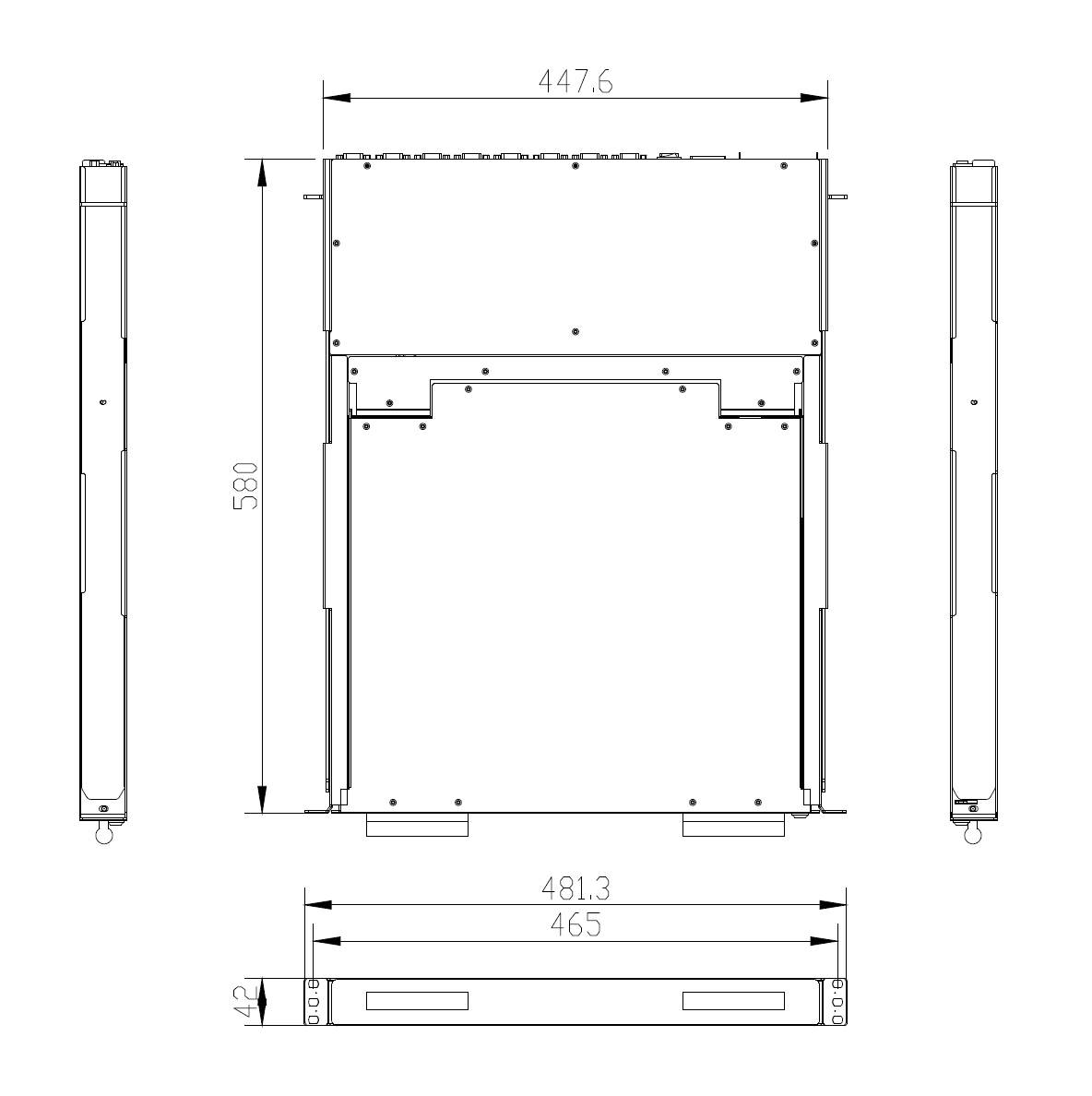 | Physical Dimensions / Net Weights | 448x42x580mm (WxHxD) / 12.5KG | |