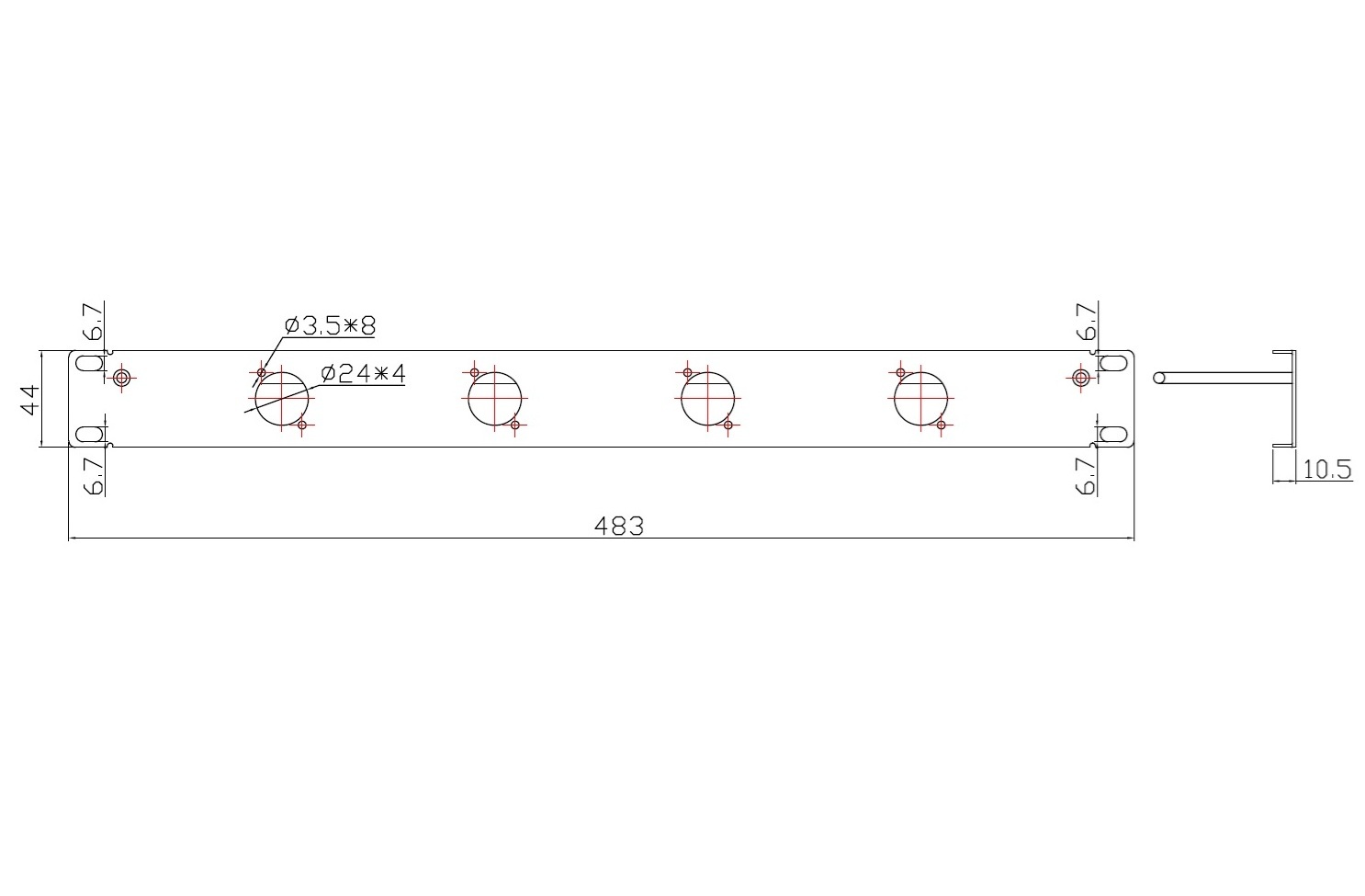 19″ 1U 4 Ports D-Type blank Patch Panel w/ Lacer Bar