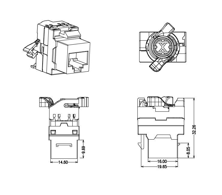 Cat.6 RJ45 Unshielded 180° Keystone Jack, Rotate Tool-less